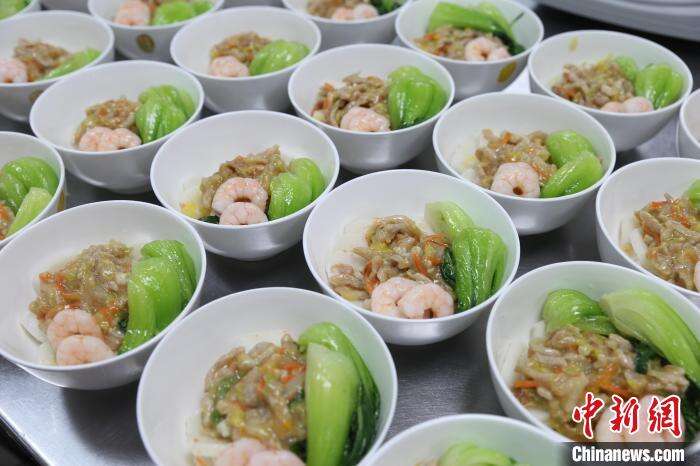 除了甜品花尽巧思,在热餐的设计上更是独具匠心。据江礼斌介绍,今年在两舱推出了“全家福”,寓意全家团聚之福,食材丰富、色泽悦目,包括海鲜、肉类、健康蔬菜等,汤味浓厚适口,也是每逢佳节良辰国人餐桌上常备的一道健康美食。在经济舱推出的是白菜肉丝炒年糕,寓意“年年高”的美好祝愿。