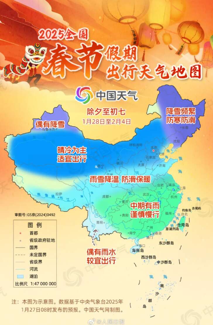 据中国天气网,除夕至初七,西北、华北等地气温偏低;除夕至初二,新疆北部、东北地区等地有降雪;初二至初五,南方地区有一次雨雪天气过程;初五至初七还将有冷空气影响中东部地区。另外,我们将迎来首个“非遗版”春节,北京庙会、河北蔚县打铁花、广东潮汕英歌舞……到当地游玩天气如何?建议穿戴啥衣物?戳图↓