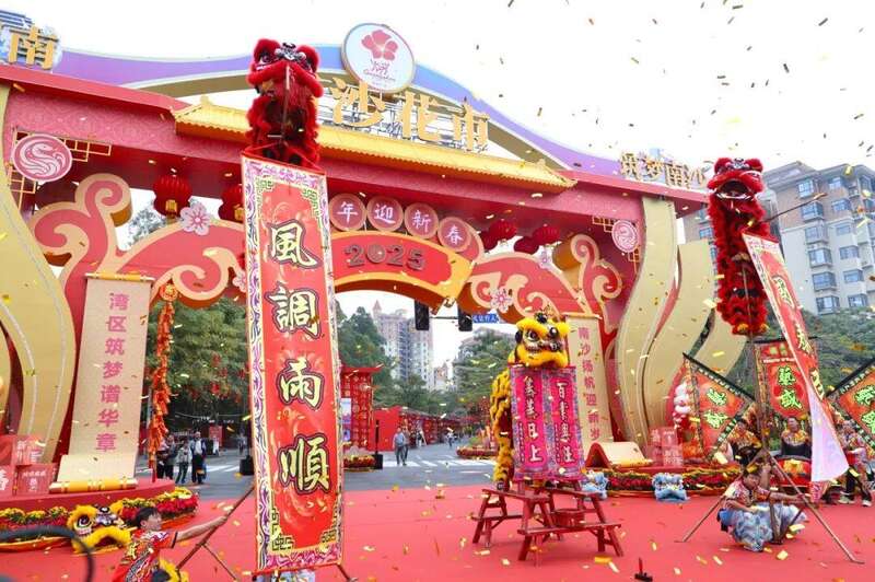 今年南沙花市为期6天,从1月22日至1月27日,每天9时开市,21时收市,1月27日则延至22时结束。花市全长502米,共设置122个档位,分为鲜花区、春联区、年货区、公益区、盆桔区、观赏鱼区、配套服务区七大区域,沿途设有8大打卡点位,为前来行花街的市民游客提供“吃喝玩乐购”一条龙的沉浸式体验。