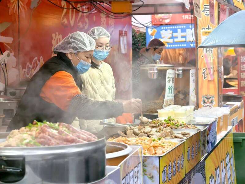 特别的是,在荔湾花市,市民群众还可以打卡品尝各式美食,老西关濑粉、叉烧包、糯米饭等应有尽有,迎春记忆也可以很“美味”。