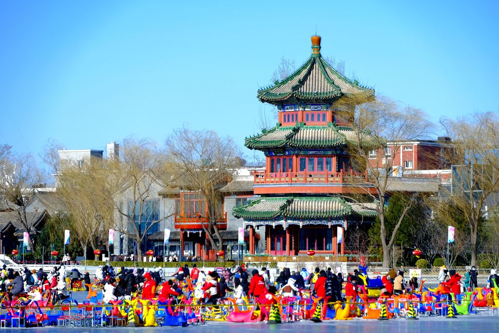 北京什刹海冰场热闹非凡 游人畅享滑冰乐趣