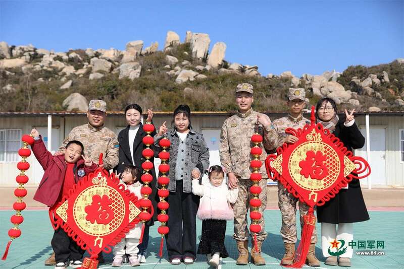 接到部队热情的邀请,多位军属启程奔赴。岛上海风刺骨,而战友们的热情却让军嫂舒江会心里暖暖的,在战友们的簇拥下,二级上士贾迪聪带着舒江会和3岁的女儿一起向家属来队房走去,驻地条件艰苦,但后勤保障一直在努力改善,看着房间内家具家电一应俱全,舒江会感动满满。一级上士侯化壮随单位驻训、参加任务,连续几年没能回家过年,今年,妻子魏云带着一双儿女来队,一家四口团聚,看见心心念念的老婆孩子,侯化壮顿时热泪盈眶,魏云抱着孩子笑道,“今年,我们可以在岛上和爸爸一起过年喽!”