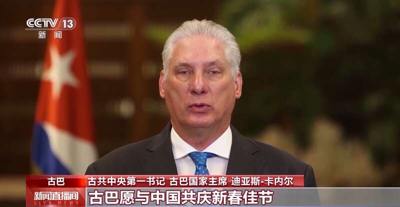 古共中央第一书记 古巴国家主席 迪亚斯-卡内尔:亲爱的中国人民和中国领导人,古巴愿与中国共庆新春佳节。我谨代表古巴共产党、古巴政府和古巴人民,向你们致以最诚挚的祝福。祝愿中国繁荣昌盛,人民幸福安康。