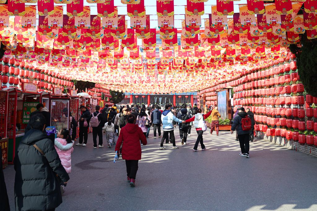 2025年1月29日,正值农历正月初一,南昌滕王阁景区推出新春系列活动,游客们在此感受滕王阁的古韵与风貌,体验红火热闹中国年。图为滕王阁景区大门前游人如织 中新社记者 刘思伟 摄