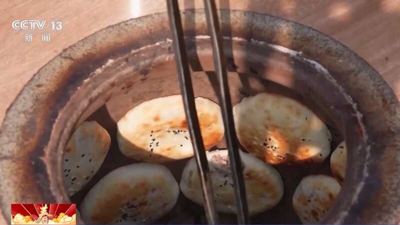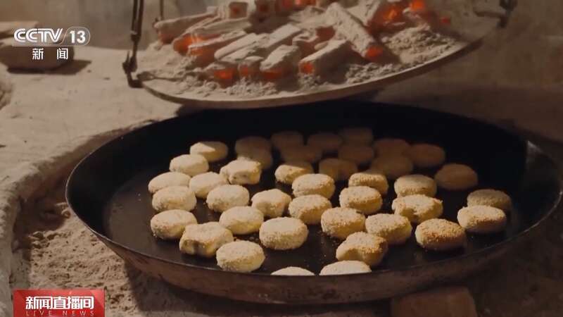 与此同时,另一户人家则忙着制作缙云烧饼,揉面、调馅、贴炉,一气呵成。随着炉火烘烤,烧饼渐渐膨胀,表面泛起诱人的金黄,芝麻在饼面上散发出阵阵香气。