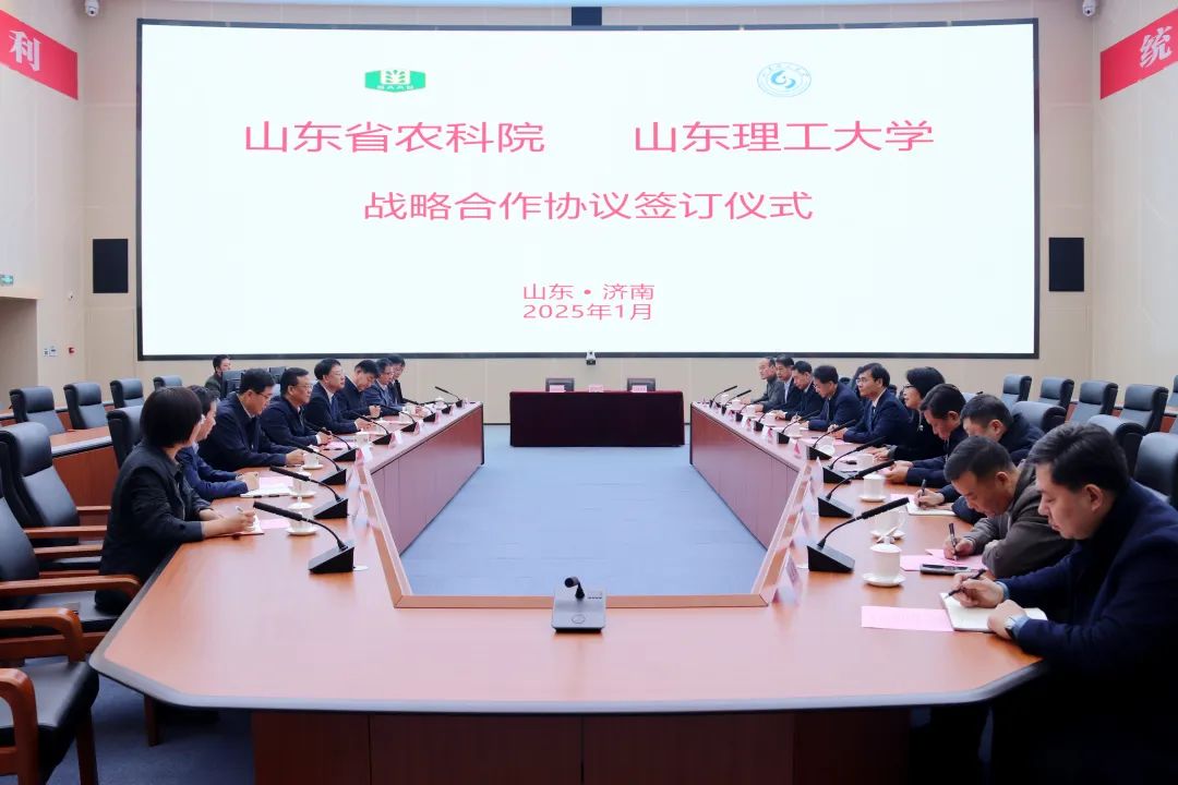 1月23日,学校与山东省农业科学院战略合作协议签约仪式在省农科院1号楼会议室举行。校党委书记胡兴禹,校长李玉霞,党委副书记苏守波、杜方岭,省农科院党委书记梁金光,党委副书记、院长李向东,党委副书记贾无,党委委员、副院长刘开昌出席签约仪式,签约仪式由贾无主持。