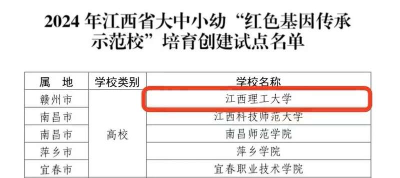 打造“江理红”!江西理工大学成功获评“红色基因传承示范校”培育创建试点单位