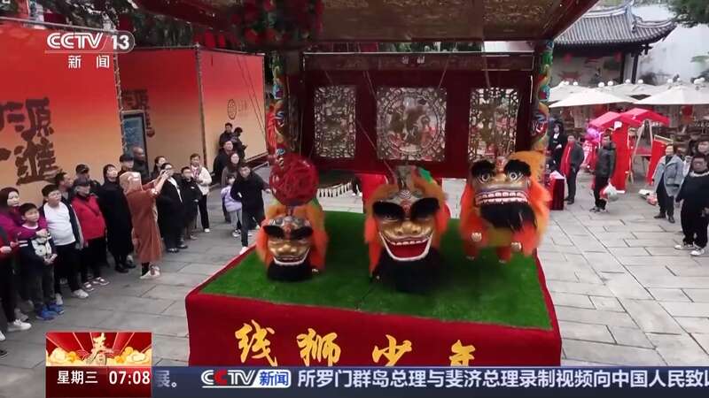 福建宁德霍童镇兴贤村少年线狮队队长 陈吉宏:线狮,是用绳线去提控狮子的一种表演形态。我们的狮子表演形态就是母亲带着孩子在共同追逐球,实际上是一种表现母爱的环节,那我们中国的团圆,就是大家聚在一起过春节,就是家家户户,团圆圆满。