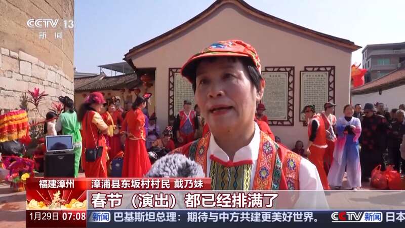 福建漳州漳浦县东坂村村民 戴乃妹:春节演出都已经排满了,我还有一份工作是演木偶戏给外地的游客看,再把这些农村的活动都搞起来。