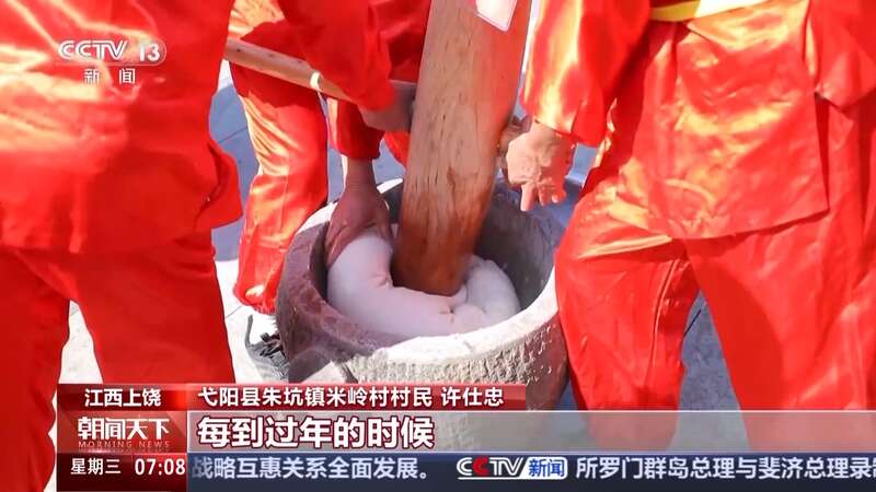 江西上饶弋阳县朱坑镇米岭村村民 许仕忠:我们弋阳有个风俗,每到过年的时候家家户户都会打点年糕,寓意家庭事业步步高。