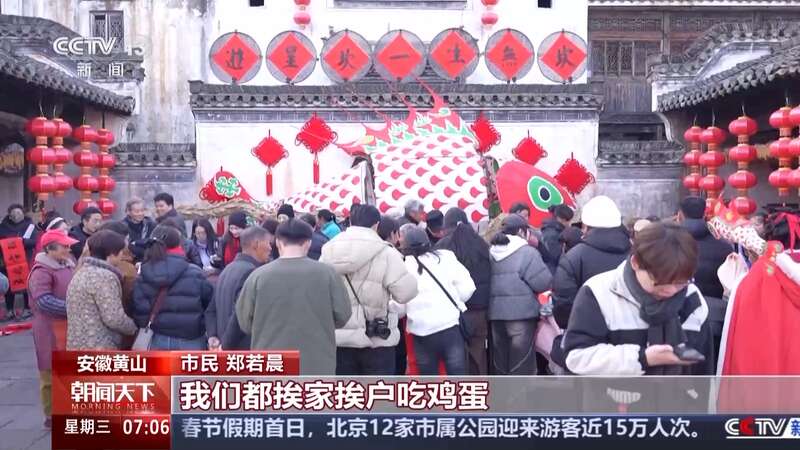 安徽黄山市民 郑若晨:每年过年的时候,我们都挨家挨户吃鸡蛋。以前经济没有这么发达的时候,鸡蛋就是一个比较好的东西,拿出来招待客人。我们徽州人还是蛮延续传统的春节习俗的。