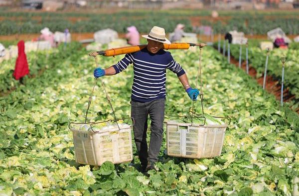 云南陆良:菜农采收蔬菜 丰富春节“菜篮子”