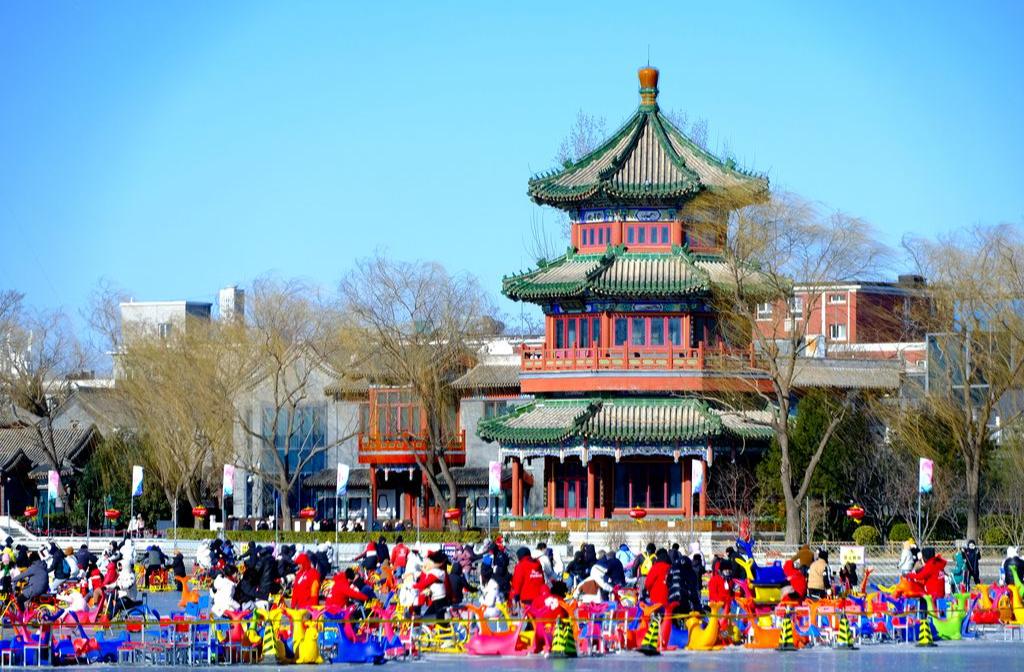 北京什刹海冰场热闹非凡 游人畅享滑冰乐趣