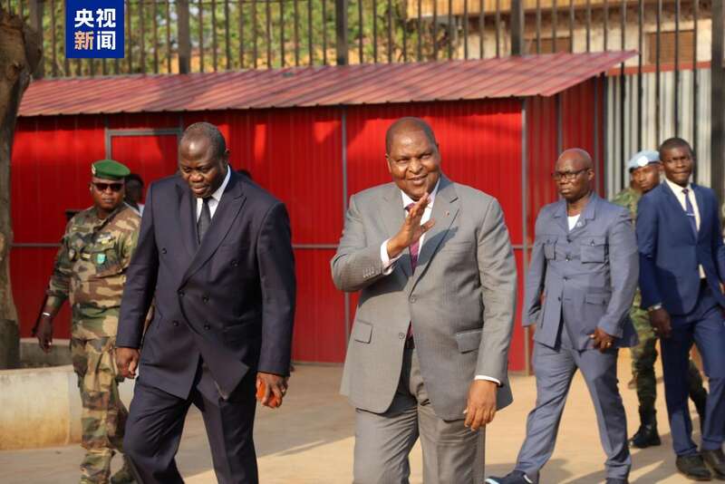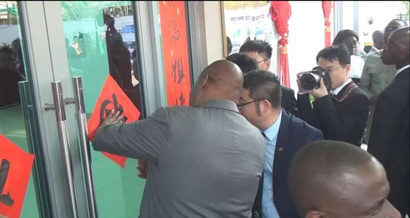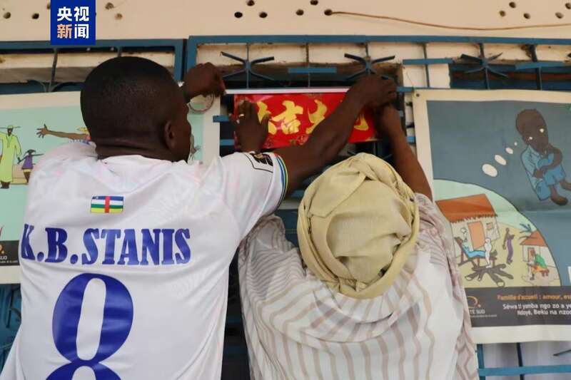 中非共和国总统为中资机构和华人家庭贴春联 共庆中国年