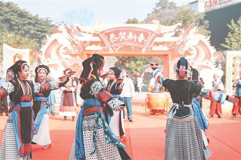 连日来,在黔东南州丹寨万达小镇,威风凛凛的锣鼓表演中,鼓手们激情四溢,敲出新春的欢快节奏;灵动的舞龙舞狮表演里,演员们身手矫健,将龙与狮的神韵展现得淋漓尽致;还有极具地方特色的少数民族舞蹈,舞者们舞步轻盈,传递着对新年的美好期盼。