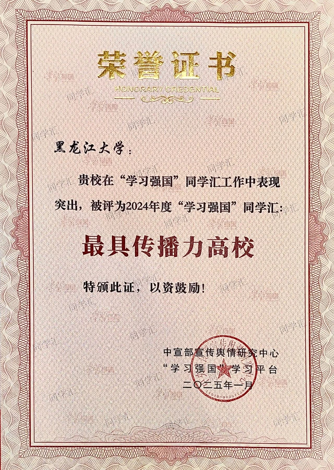 黑龙江大学获中宣部宣传舆情研究中心、“学习强国”学习平台多项表彰