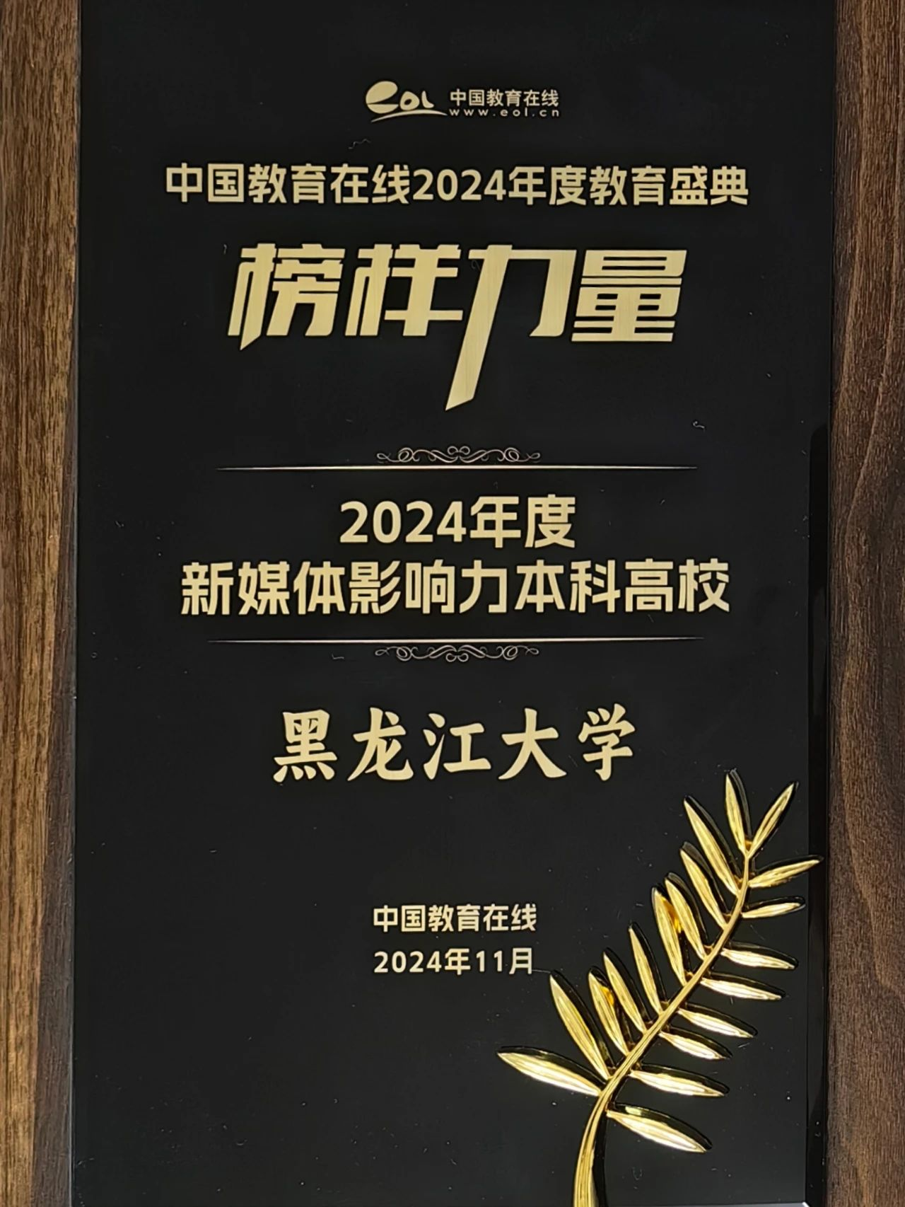 近日,中国教育在线公布了2024年度“榜样力量·教育盛典”榜单,经过前期征集、综合评审等阶段, 黑龙江大学获评2024年度“新媒体影响力本科高校”荣誉称号。