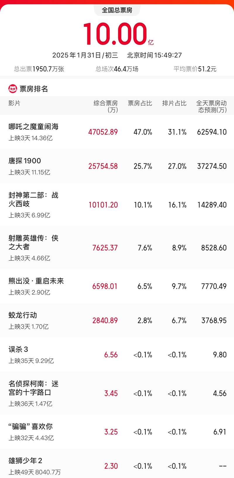大年初一,共有六部国产新片集中上映,包括《封神第二部:战火西岐》《哪吒之魔童闹海》《唐探1900》《蛟龙行动》《熊出没·重启未来》《射雕英雄传:侠之大者》。详情>>