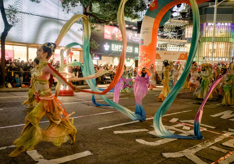 2025年1月29日,中国香港,尖沙咀举行新春花车巡游。图片来源 视觉中国
