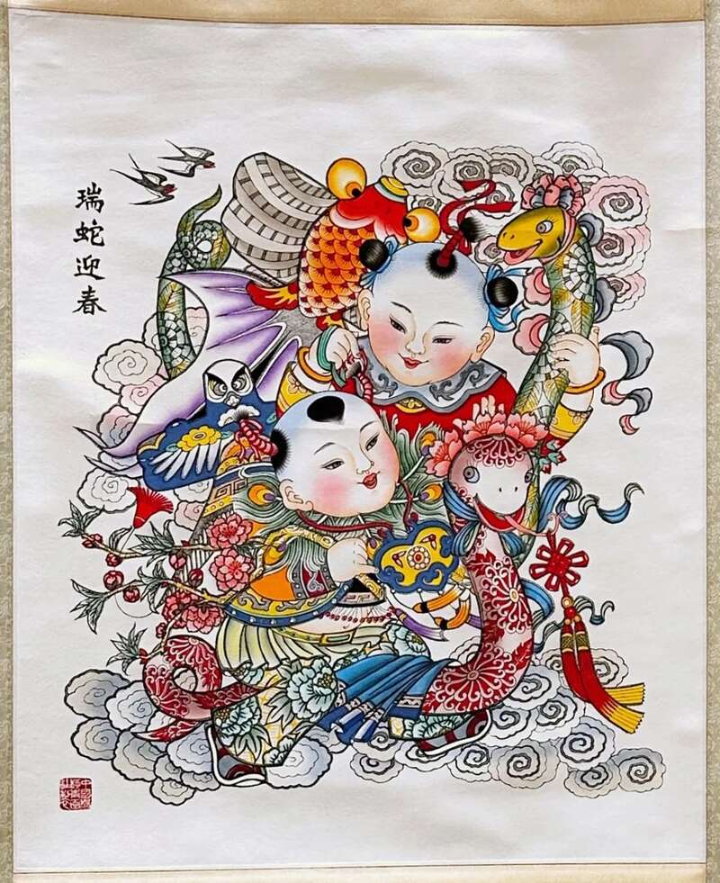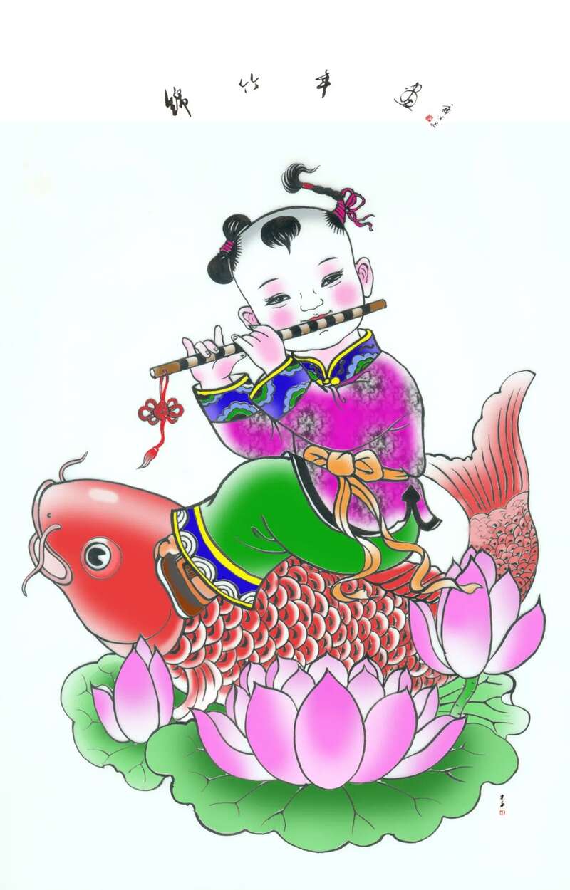 年画是我国特有的一种绘画体裁,供人们在过年时张贴,故名。宋代已有关于年画的记载。年画以其喜庆欢乐的内容、强烈的浪漫主义色彩著称,寄托着对新年的祈愿、蕴含着对美好的期待,成为年文化的重要载体。