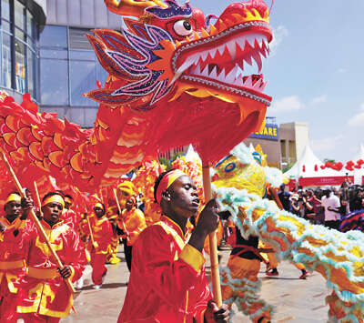 肯尼亚首都内罗毕的中国春节庙会现场,红灯笼高挂,年味十足。当地民众和游客摩肩接踵,欣赏舞龙舞狮、传统歌舞、少林功夫、杂技、变脸、古筝演奏等文艺表演,品尝春卷、饺子等中国美食,体验拓印年画、面塑、写福字等春节习俗。“近年来,肯中两国文化交流合作取得了令人瞩目的成就,这些成就源于两国共同的价值观与相互尊重。春节庙会是节日庆祝活动,也是深化肯中文化交流的桥梁。”肯尼亚性别平等、文化艺术和遗产部常务副部长巴希尔说,“参加春节庆祝活动,让我感受到了团结、繁荣与希望。”