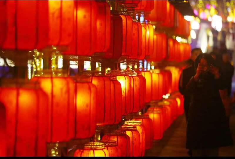 “盛世溢彩 文耀宝地”主题灯展开启时间为除夕至正月十五的每天晚上的5点半至9点。
