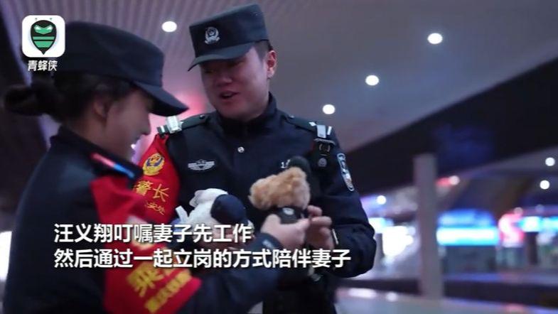 除夕坚守的铁路民警夫妻 值乘间隙于站台“团聚”