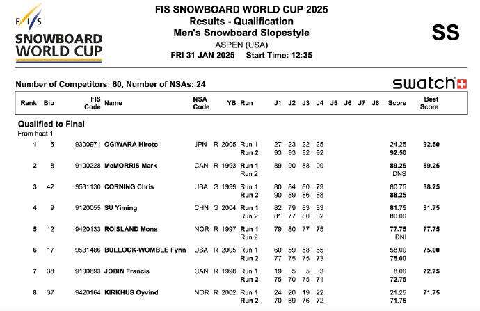 苏翊鸣晋级阿斯本站决赛