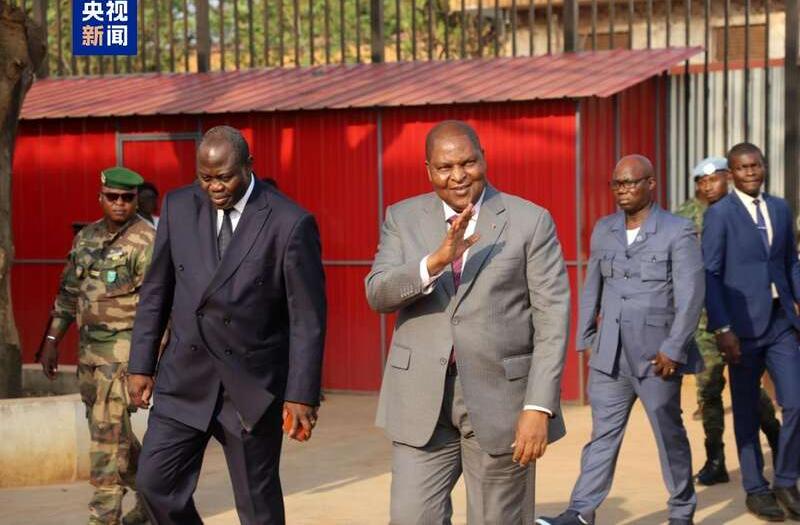 中非共和国总统为中资机构和华人家庭贴春联 共庆中国年