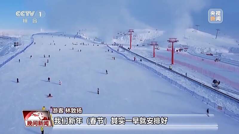 游客 林致扬:我们新年其实一早就安排好全家一起来阿勒泰这里玩,主要也是想来将军山这边滑雪。