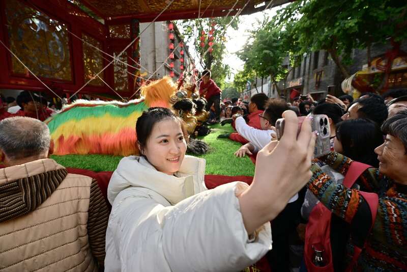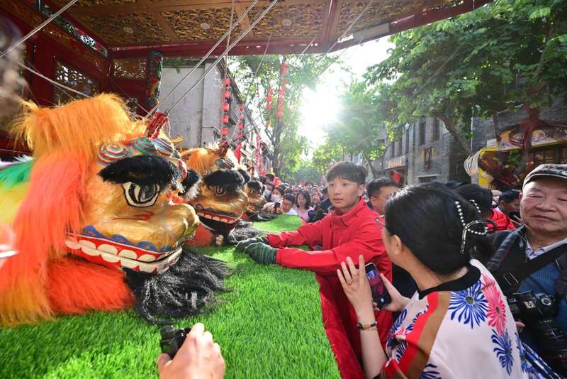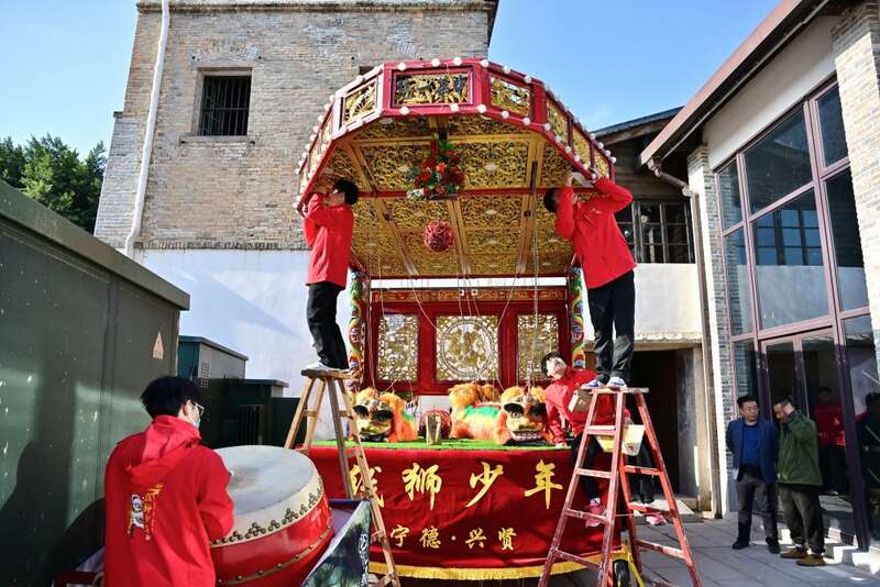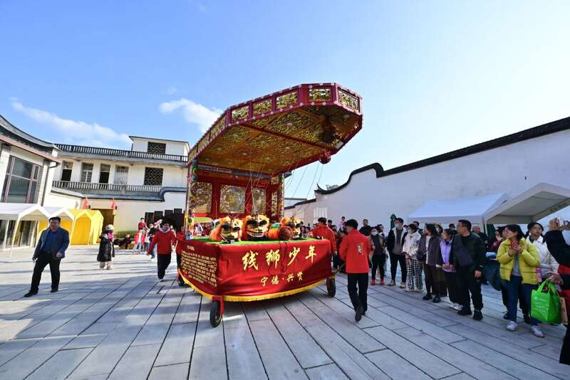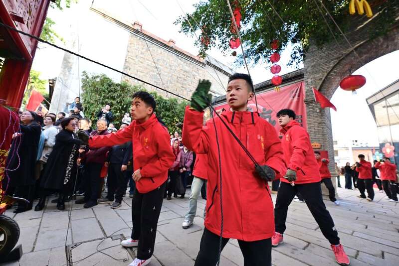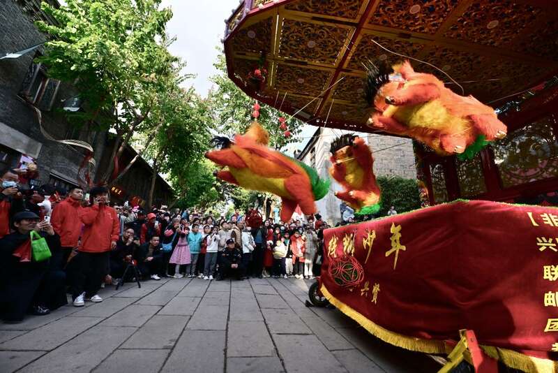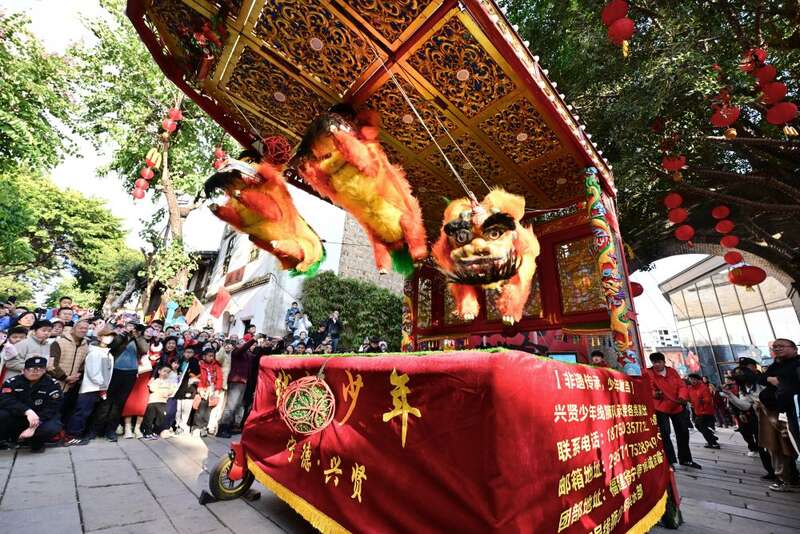 “兴贤少年线狮队”现身福州市上下杭历史文化街区