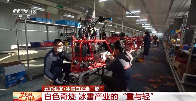 这几年,骑手们真切地感受到,冰天雪地也是金山银山。春节前夕,在这个总面积19000平方米的厂房里,工人们正在流水线上忙着组装雪地摩托车的零部件,赶着订单交付。
