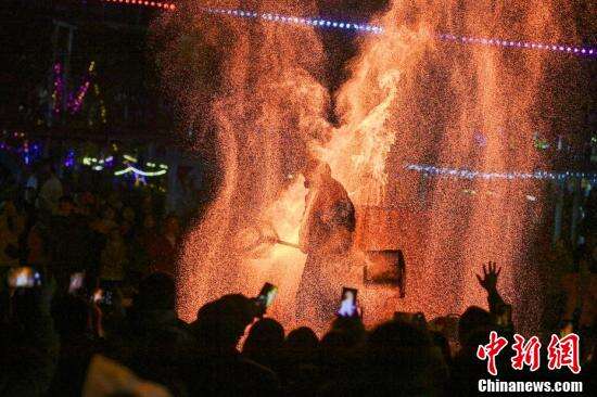 四川眉山:民众观赏“铁花雨”欢欢喜喜过大年