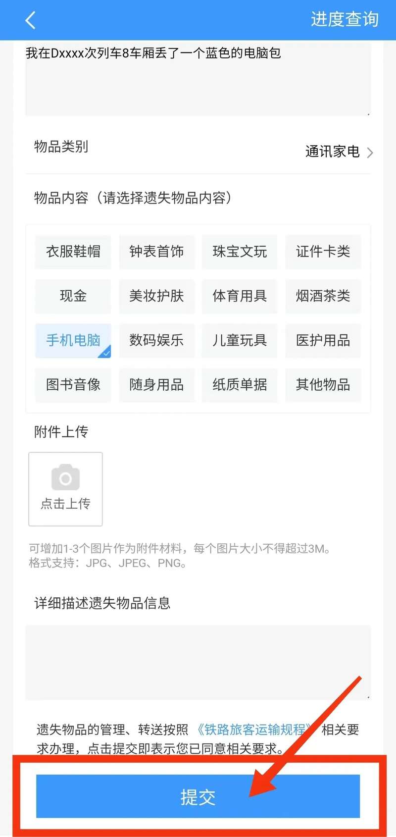 6 确认无误后点击【提交】,同时也可在本界面右上角查询进度