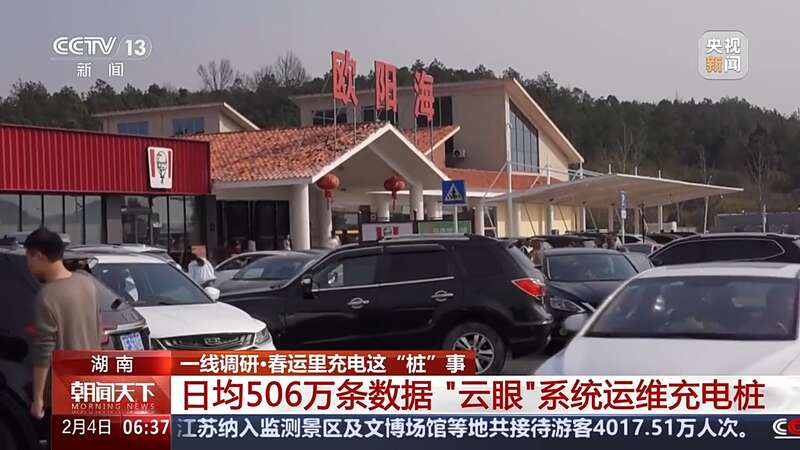 国网湖南电动汽车服务有限公司充电运营中心主任 鄢笠:产生的数据量大概每天506万条,我们就根据平台看板的分析,对高速服务区郴州欧阳海、株洲的醴陵、怀化的溆浦和衡阳常宁这4个服务区繁忙站点进行了扩建,以满足今年春运的需求。