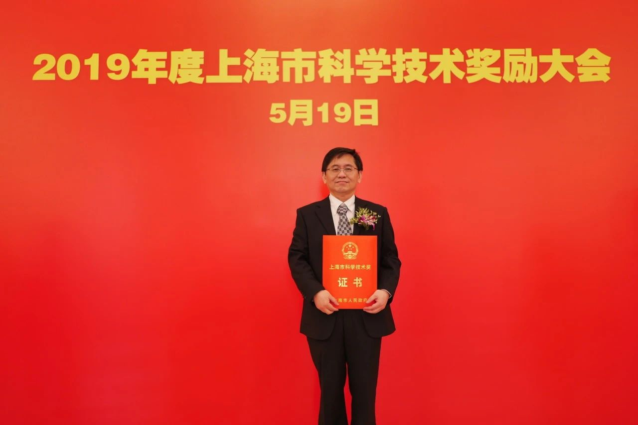程晋获得2019年上海市自然科学一等奖,在颁奖大会上的留影
