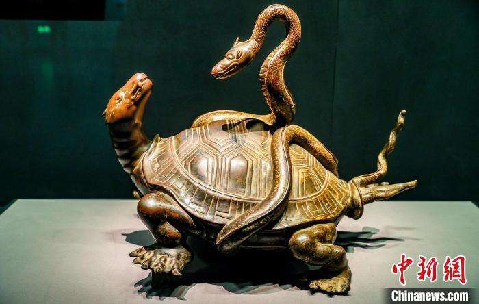 据介绍,玄武是中国古代传说中镇守北方的神兽,往往以龟蛇合体的形象出现。汉代以来,龟蛇作为玄武神的象征受到人们奉祀,后被道教吸收后将其人格化,逐渐成为道教的大神。