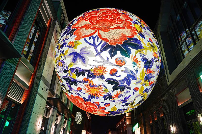 北京坊百年灯街盛景重现 球形牡丹花灯璀璨夺目
