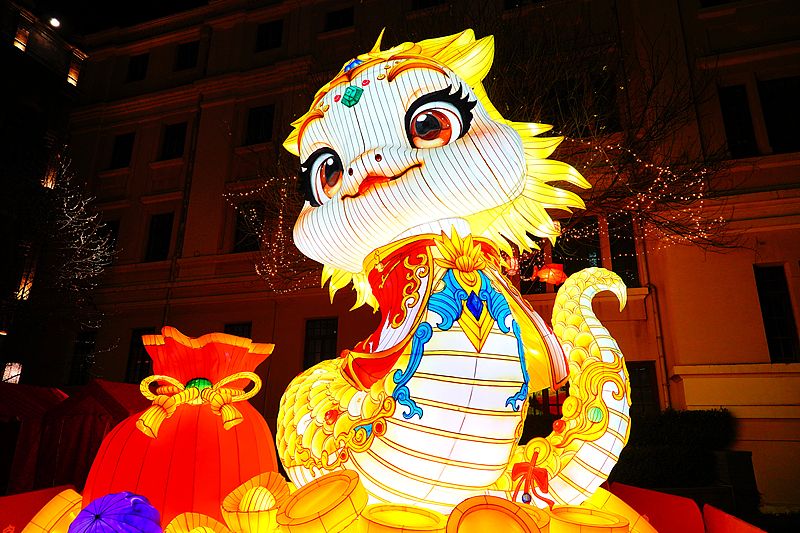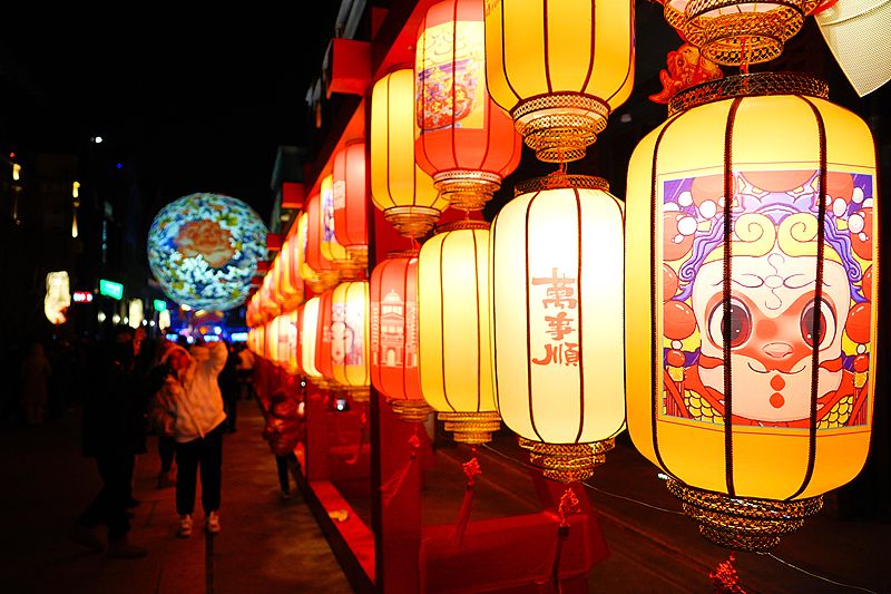 2025年2月4日,北京,乙巳蛇年正月初七,夜幕下的北京坊灯光璀璨。