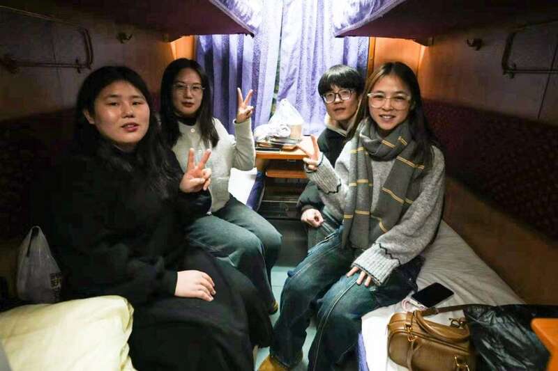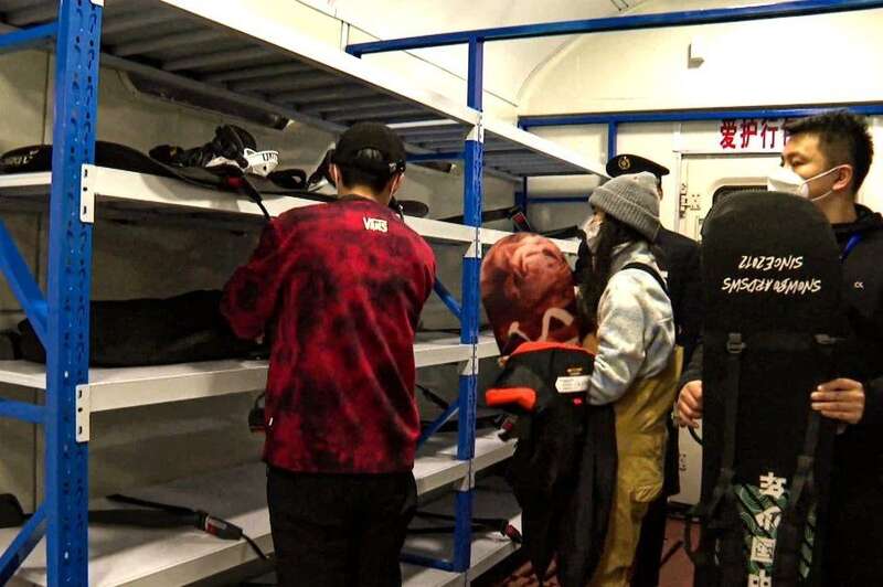 “坐火车去阿勒泰滑雪太方便了!列车上不仅有专门放雪板的车厢,还配备了固定绑带。我们在车上还遇到了志同道合的‘雪友’,大家聊得很开心!”