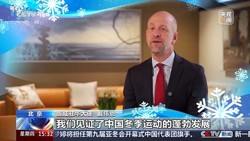 挪威驻华大使 戴伟恩:我们见证了中国冬季运动的蓬勃发展,中国拥有世界顶尖的单板滑雪运动员,还有奥运金牌得主,这很棒。我曾在挪威与正在进行夏季集训的中国越野滑雪队队员见面,希望他们也能取得优异成绩。很高兴中国举办亚冬会,让更多人对冰雪运动、冬季运动产生兴趣。我希望每一位参赛者都能在赛场上展现出最好的自己。祝所有参加亚冬会的运动员好运!