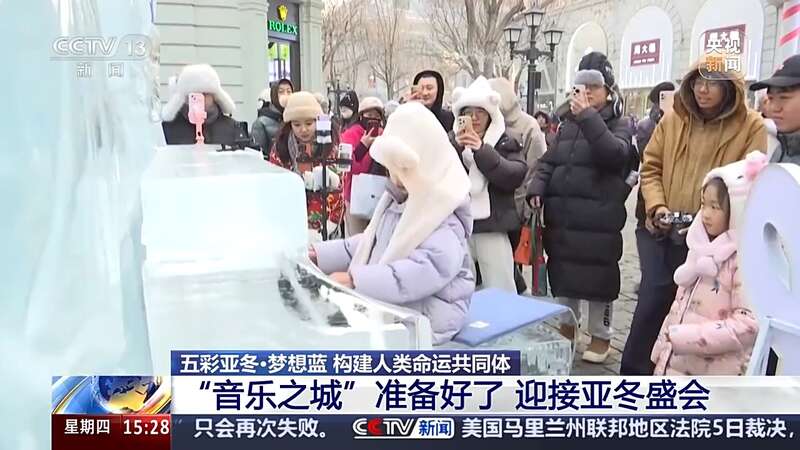 这个冬天,在中央大街,冰钢琴成为哈尔滨市民和海内外游客的新晋打卡点。外国友人现场弹奏,周围的人们载歌载舞,不分国籍、无论南北,一同欢聚。多元、开放、包容的哈尔滨,汇通中外迈向未来。亚冬会,哈尔滨准备好了!面向全球招募的志愿者们向各国朋友发出邀请。