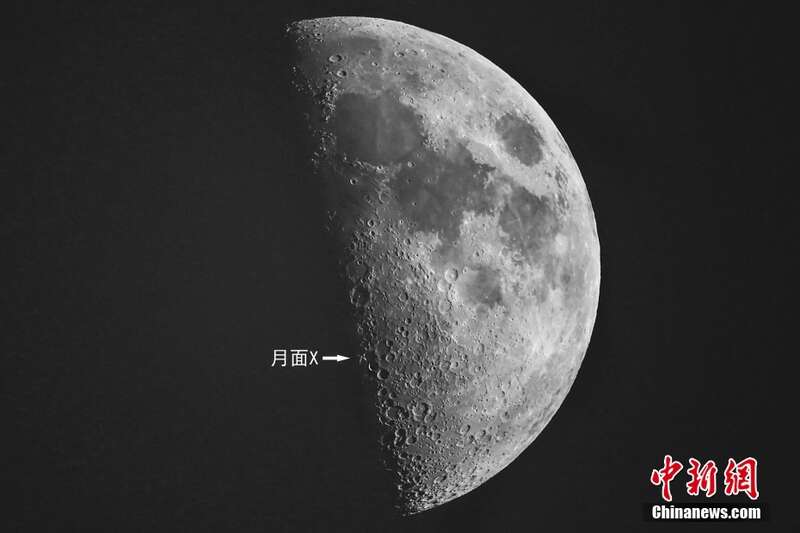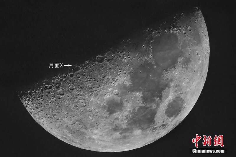 据悉,上弦月时,阳光近乎贴着月面照亮拉卡耶、普尔巴赫和比安基奴斯三座环形山顶部,便会在月面缺口处形成类似 “X” 的地貌特征,仅持续约1小时,并非每次上弦月都能得见。