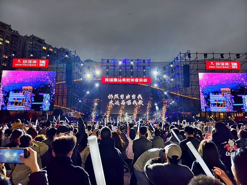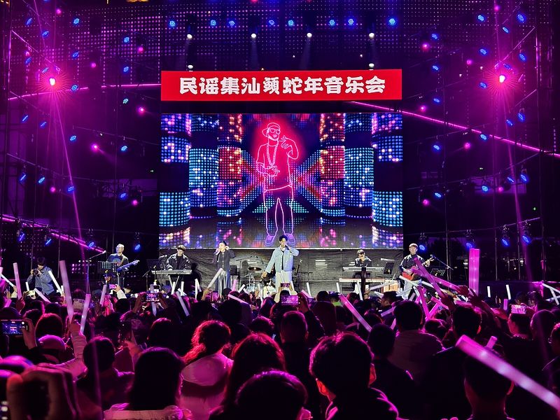 2025年2月3日晚,广东省汕头市潮人码头,“民谣集”音乐会火热开唱,氛围超热烈、歌单超经典、人气超火爆,吸引市民和游客前来观看。