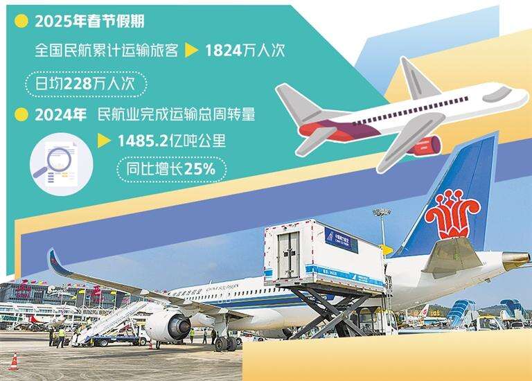 中国民航局最新数据显示,刚刚过去的2025年春节假期期间,全国民航累计运输旅客1824万人次,日均228万人次,其中,2月3日全国民航发送旅客248万人次,创历史纪录,延续了2024年“淡季不淡,旺季更旺”的发展态势。
