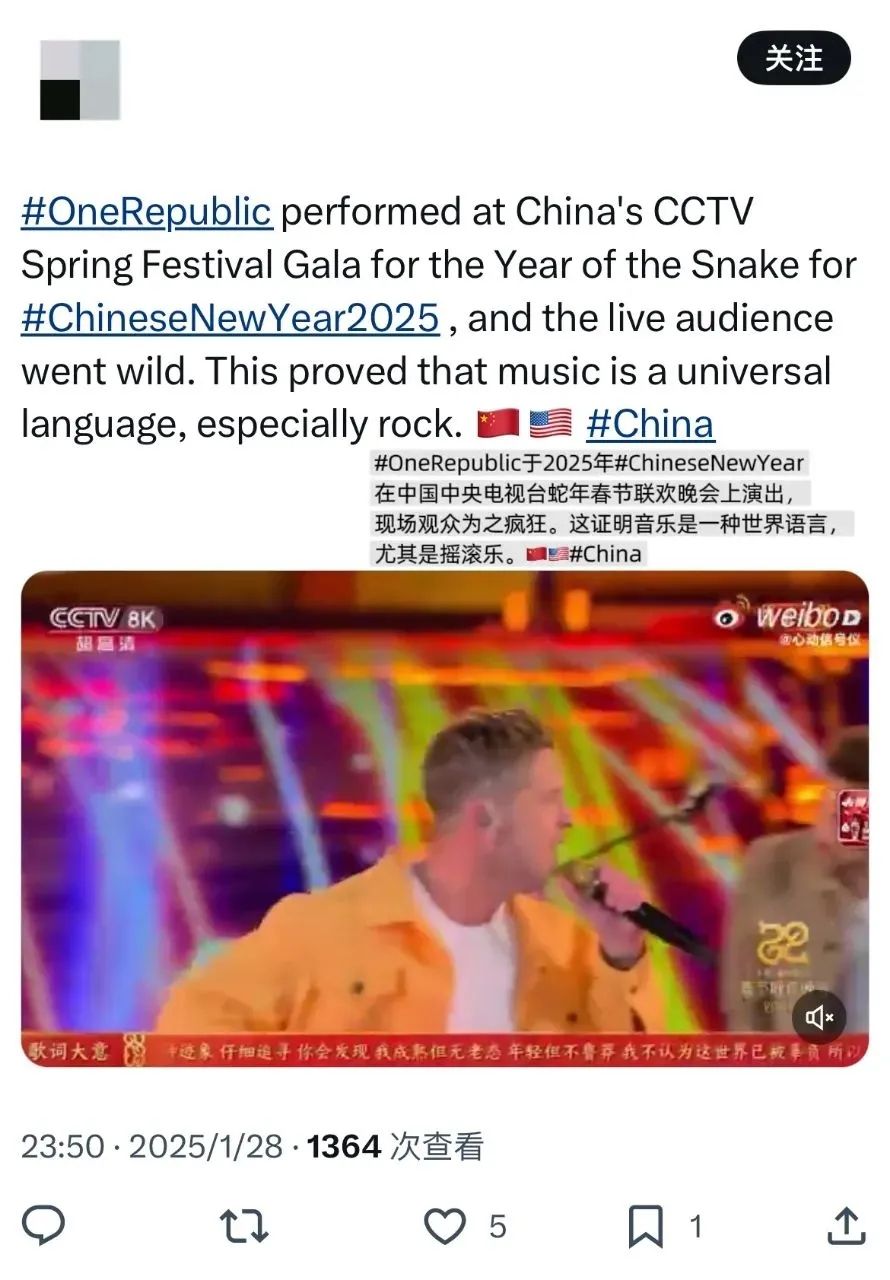 演出结束后,OneRepublic在社交媒体上发布现场照片,并附上了一句简单而诚挚的祝福:“Counting Stars into the Chinese New Year!”(数星星来迎接春节)。乐队主唱对武汉很有感情,曾化身大厨向粉丝分享热干面的做法,这句祝福让热干面的芝麻香飘向“星际”。