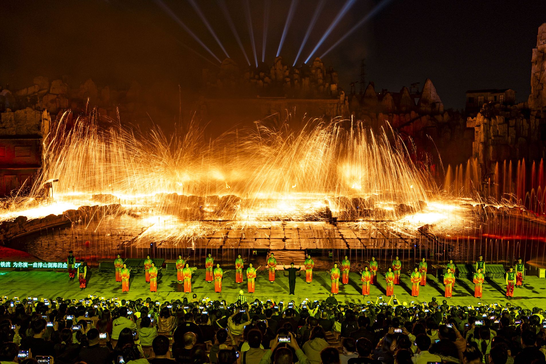 “当然,核心还是打铁花,我们这每天晚上都是108人——世界吉尼斯纪录级别的演出!”
