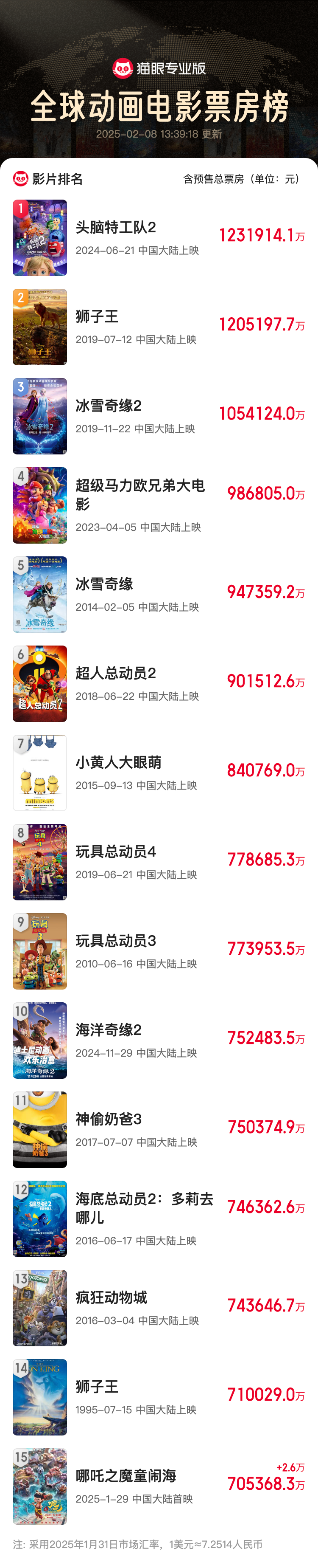 TOP15!“哪吒”“闹”了世界动画电影大海