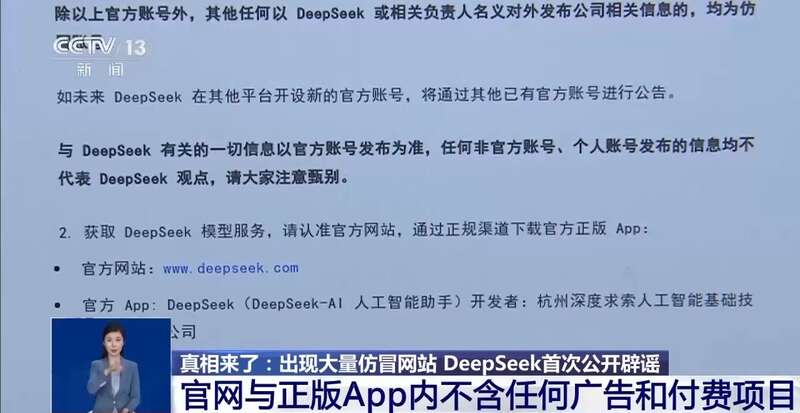 DeepSeek爆火后首度公开辟谣,正是因为仿冒DeepSeek的钓鱼、欺诈类网站短期内大量出现,极易令不明真相的网友蒙受损失。