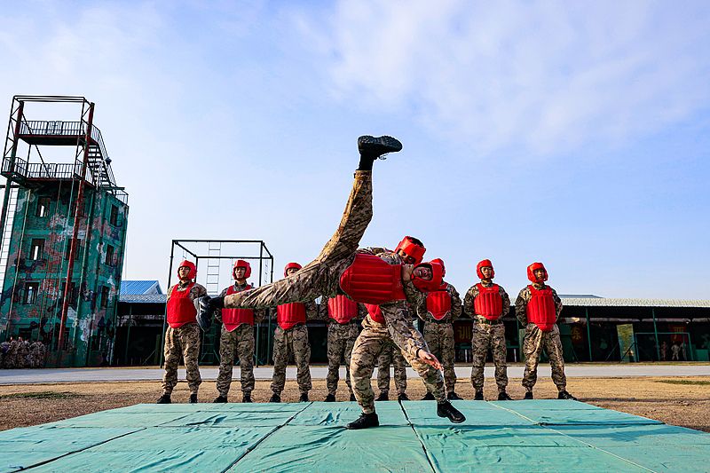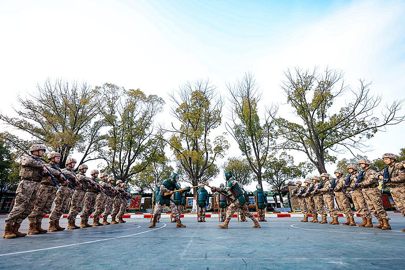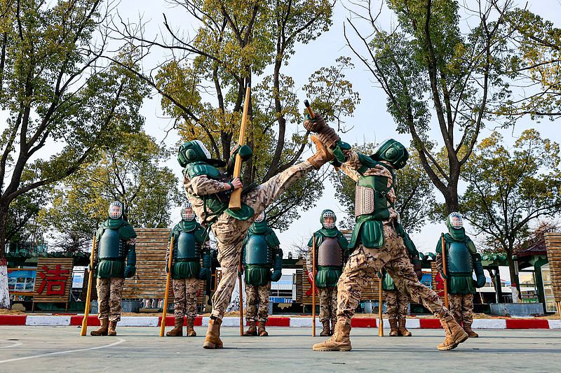2025年2月6日,武警上海总队机动第一支队官兵正在进行刺杀对抗训练。
